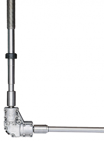 Shaft transmission between posts through oil-filled conic gear boxes requiring no maintenance. |
