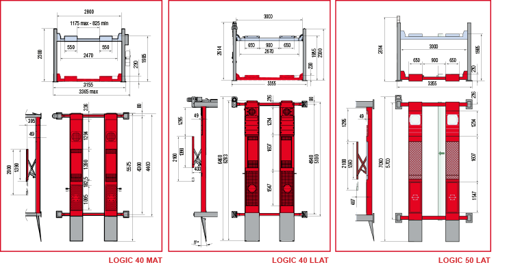 LOGIC 40 MA / 4000 kg (mm 4460) LOGIC 40 LLA / 4000 kg (mm 5100) LOGIC 50 LA / 5000 kg (mm 5700) LOGIC 65 LA / 6500 kg (mm 5700) LOGIC 80 A / 8000 kg (mm 6000)