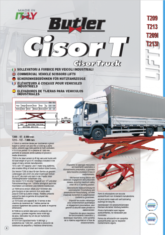 No cross rails or torsion bars between lifting platforms (for maximum accessibility in the working area). All pivot points made with self lubricating bushings for long life. Platform surface in ribbed anti-slip steel plate. Hydraulic synchronisation of the platforms, independently from the load distribution, by means of: